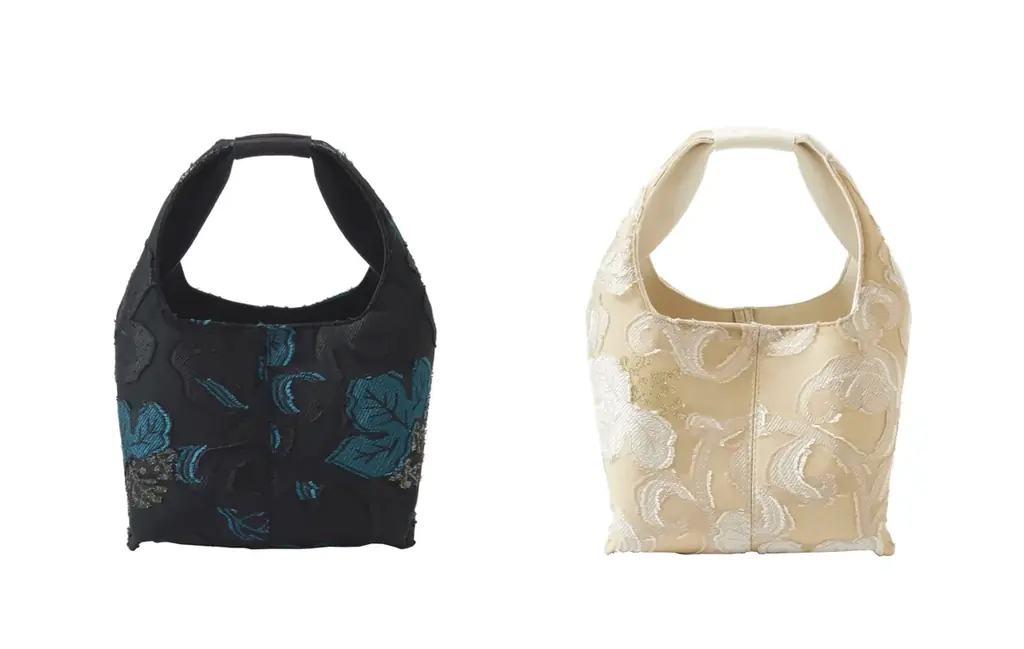 テキスタイルの出自は群馬県(Textile from Gunma)で、繊細かつ華やかな表情が特徴です。用途的には日常のちょっとした外出に適したサイズ感を持ちながら、素材の表情で存在感を出すデザインです。