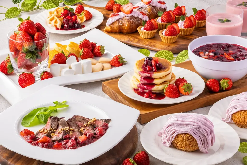 期間中、宿泊者は朝食ビュッフェ・夕食ビュッフェ・ラウンジサービスを通じて多彩ないちごメニューを体験できます。いちごの提供は品種や収穫状況によって変更される場合がありますが、主要なメニュー内容は以下のとおりです。