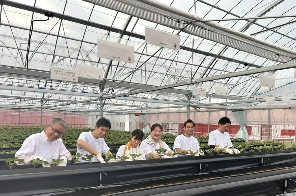 宗像市に2025年1月に開業した「宗像いちごファーム」で育てられたいちごを、ホテルがオーナーとして苗を購入し、スタッフが栽培作業を行ってきました。定植、間引き、管理といった農作業にスタッフが参加することで、現場の知見を取り入れた提供が可能になっています。
