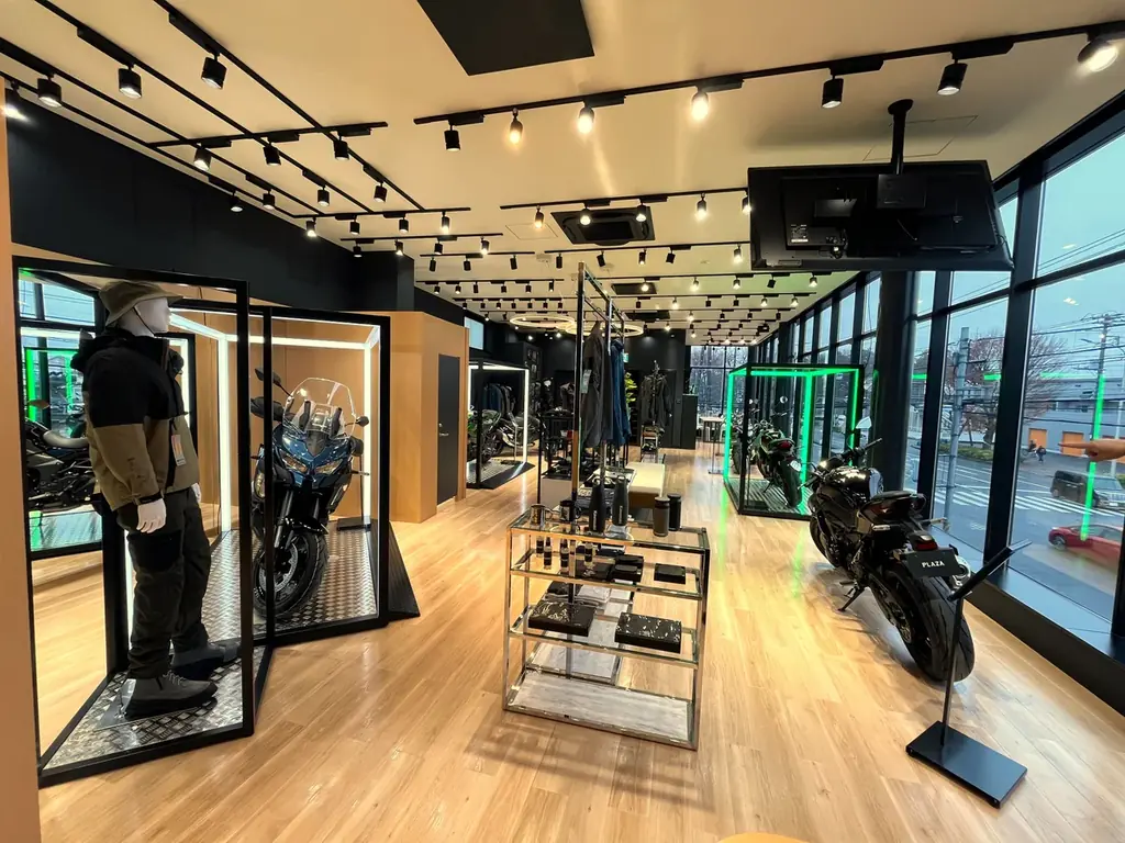 カワサキプラザは全国に展開する店舗ネットワークで、2025年12月現在で全国94店舗を有しています。カワサキ正規取扱店として、国内で取扱うすべてのカワサキモーターサイクルの販売を行うとともに、五感で楽しめる店舗づくりを標榜しています。