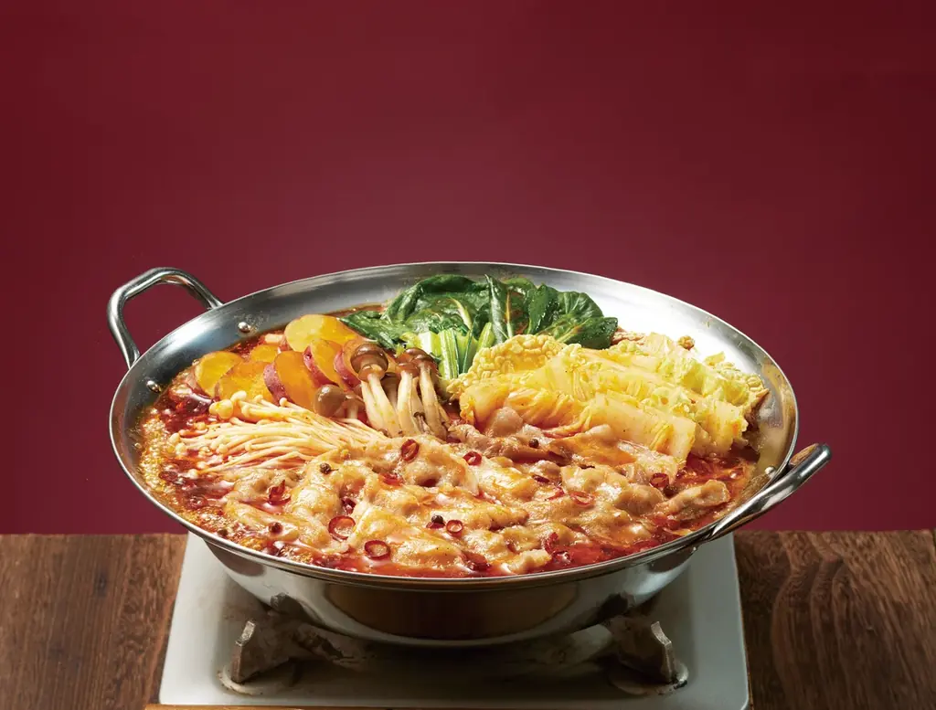 加えて、TVアニメ放送開始30周年を迎えた『エヴァンゲリオン』シリーズとのコラボレーション「EVANGELIONシリーズ30周年×YOKOHAMA」と連動し、会場ではスペシャルコラボ鍋が初登場します。コラボ鍋のひとつ「使徒鍋 ~赤い海仕立て~」は、使徒をイメージしたトマト担々鍋で、コア(トマト)をつついて温まる趣向です。写真はイメージ提供であり、実物とは異なる場合があります。