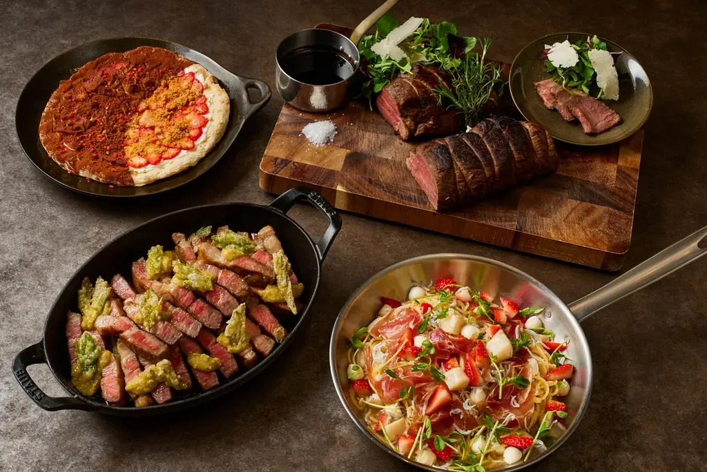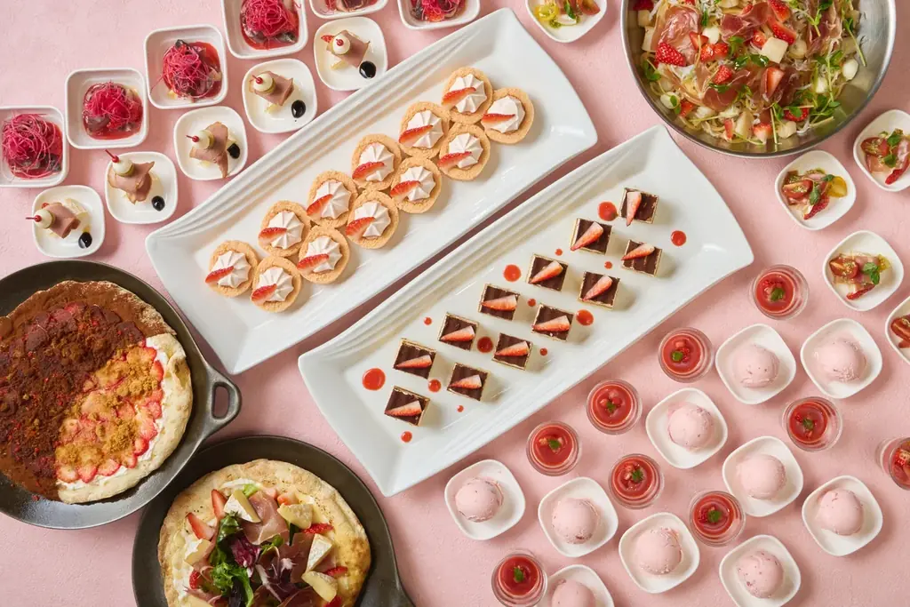 本企画は、ボリューム感のある肉料理と、いちごを活かした創作料理およびスイーツを、90分の食べ放題で提供するランチブッフェです。忙しい日常の合間に「いつもより少し贅沢なランチ時間」を過ごせる構成となっており、ライブキッチンで仕上げる出来立て料理や、イタリアンの技法を取り入れたいちごメニューが特徴です。
