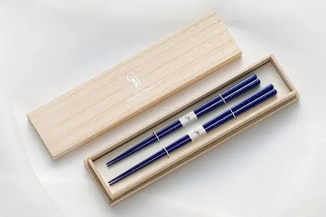 お箸専門店「箸蔵まつかん」と共同開発したオリジナルの夫婦箸を贈呈します。ブランドコンセプトであるギリシャ・エーゲ海と水面の煌めきを表現したデザインで、持ち手はフィットしやすい形状です。
