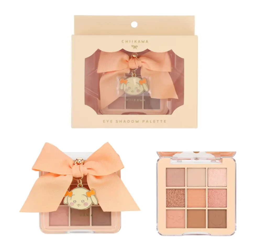 アイシャドウパレットは各キャラクターごとに税込2,530円で販売されます。パレット表面にはちいかわたちのシルエットがエンボス加工されており、リボンチャームが付属します。