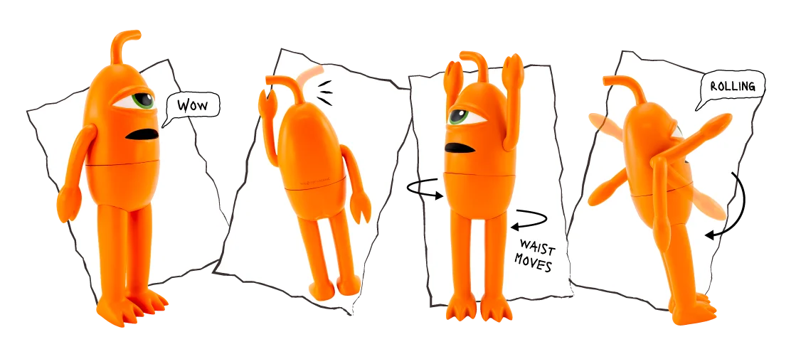 可動箇所は腕・腰・触覚(アンテナ)で、好みのポーズで飾ることができます。素材はPVC(ソフビ)を用いており、対象年齢は15歳以上とされています。パッケージや個体の仕上がりは開発中サンプルをもとにしたビジュアルが公開されていますが、実際の商品とはやや異なる場合がある旨も明記されています。