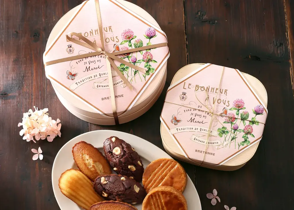 本コレクションはフランス・ブルターニュ地方の伝統を背景に、良質な発酵バターやベルギー産クーベルチュールチョコレートなどを活かした焼き菓子を中心に構成されています。店頭で焼き上げる焼き立ての品と、贈答向けのアソートやクッキー缶など、用途に応じた多彩なラインナップが用意されています。