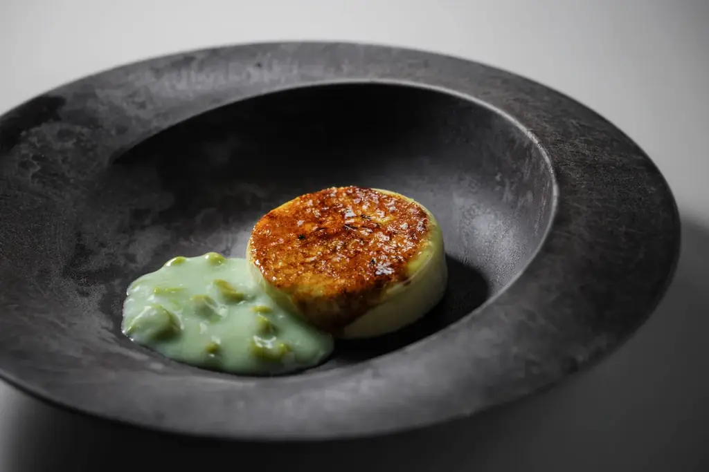 甘味として提供されるのは「ずんだのカタラーナ」で、ひんやりしたカタラーナに濃厚なずんだソースをかけた一品です。会席の一部メニュー名や料理写真がプレスでは示されていますが、実際の提供は季節や仕入れにより変動する可能性があります。