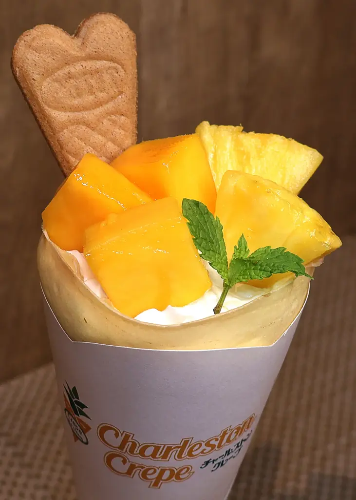 - クリーミーでもちもちとしたクレープ生地にフルーツやクリーム、アイス、チョコレート等を包んだスイーツショップ。看板商品は「トロピカル チャールストンクレープ」。食事系クレープやソフトクリーム、パフェ、タピオカドリンクも提供。