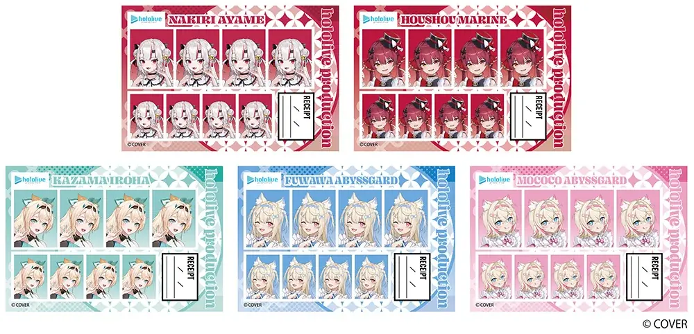 新作に起用されたのは、百鬼あやめ、宝鐘マリン、風真いろは、フワワ・アビスガード、モココ・アビスガードの5名です。各キャラクターのイラストを活かした商品展開は、コレクション性と実用性のバランスを取った構成になっており、描き起こしイラストの細部を楽しめる仕様が特徴です。