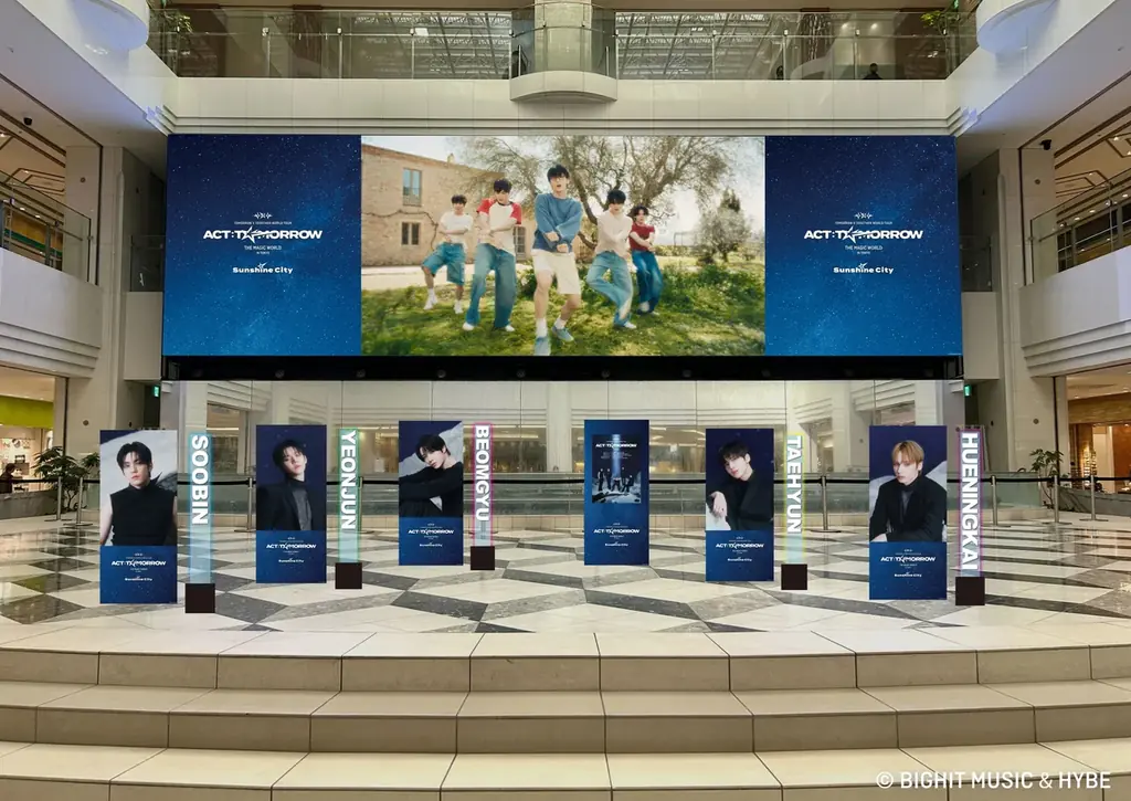噴水広場は日本デビューシングル「MAGIC HOUR」発売記念Encoreイベントの舞台としても知られる場所であり、期間中はTXTの世界観を演出する特別な展示と映像放映が行われます。実施期間は2026年1月20日(火)~1月23日(金)、時間は11:00~20:00です。