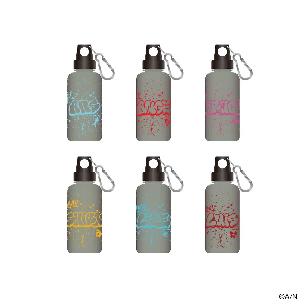 クリアボトルは500ml容量、PET・PP・アルミなどを素材にした設計です。外出時の携行を想定したサイズと容量で、各ライバー仕様の全6種を用意しています。