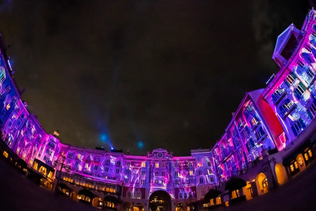 夜間には、ホテルや広場の壁面・広場を使った環境演出が実施され、25周年の夜の祝祭感を演出します。中でも東京ディズニーシー・ホテルミラコスタの壁面に映像が映し出される「スパークリング・ジュビリー・ナイト」はテーマソングに合わせた映像演出が行われます。