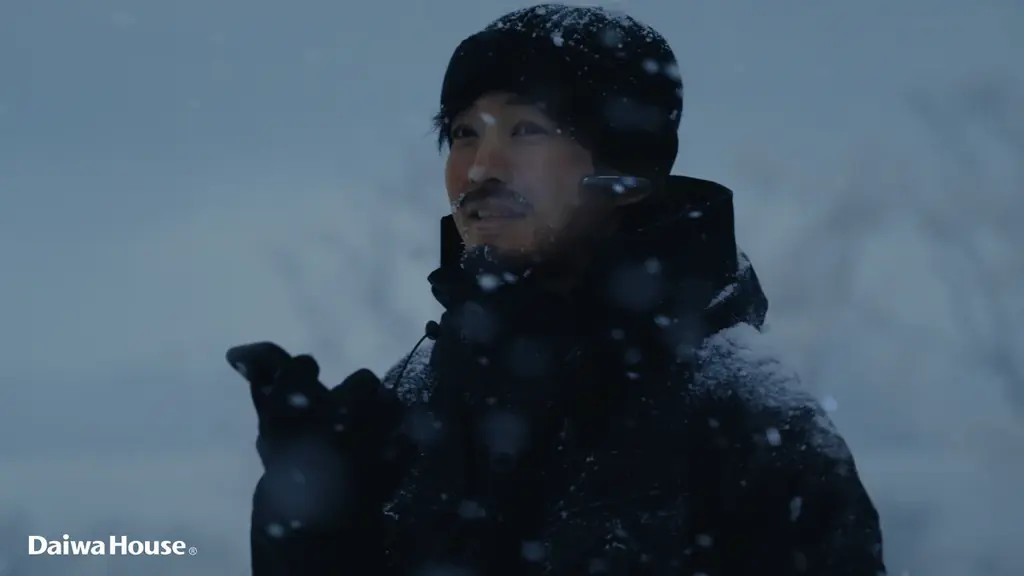 映像は降りしきる雪の中を歩く男性が登場するところから始まります。イヤホン越しに誰かと通話しており、劇中のセリフとして「問題はこの国の夏。」や「あの夏の猛暑を忘れたのか?」といった言葉が用いられています。男性は最終的に一軒の住宅にたどり着き、上着を脱いで廊下を進むと、そこに広がる空間が示されるという流れです。映像表現の対比によって、過去の暑さと現在の住環境がどう結びつくかを示す演出です。