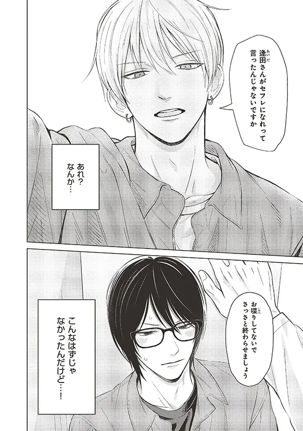 イケメン大学生と天邪鬼なフリーターの関係が「セ●レ宣言」という咄嗟の言葉から始まり、初恋へと変化していく第1話を収録。感情の揺れや葛藤が描写されます。