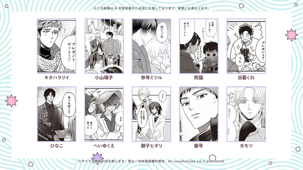 - キタハラリイ / やまやで / 猫屋タク / かのさゆり / rosca / むく田やなぴ / 浴槽つぼカルビ / 山田山 すけ / 丘野苫 / 屋号 / 小山璃子 / 参号ミツル / 熊猫 / 日暮くれ / ひなこ / へいゆくえ / 御子ヒダリ / ヨモツ