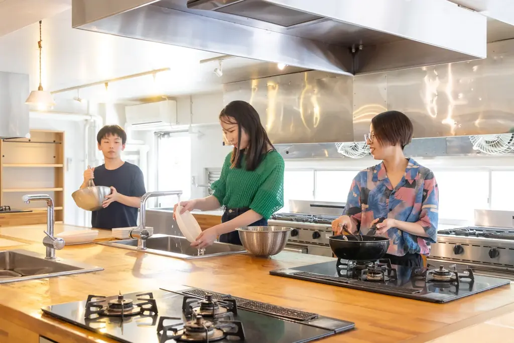 施設内には、個別に集中できる居室やアトリエ、共用のワークスペース、情報収集や休憩が可能なラウンジ、広いキッチンなど、多様な創作ニーズに対応した空間が用意されています。居住者同士の相互作用が日常的に発生することで、創作速度や品質の向上を目指す構成です。