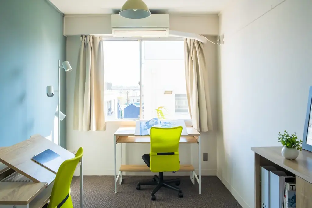 居室は個室型が中心で、うち34室はアトリエプラン付きです。これは作品制作のための専用スペースを確保したい作家志望者に配慮した配分です。共用のワークスペースは複数人が同時に作業できる設計で、他者の創作行為が集中力向上につながることを想定しています。