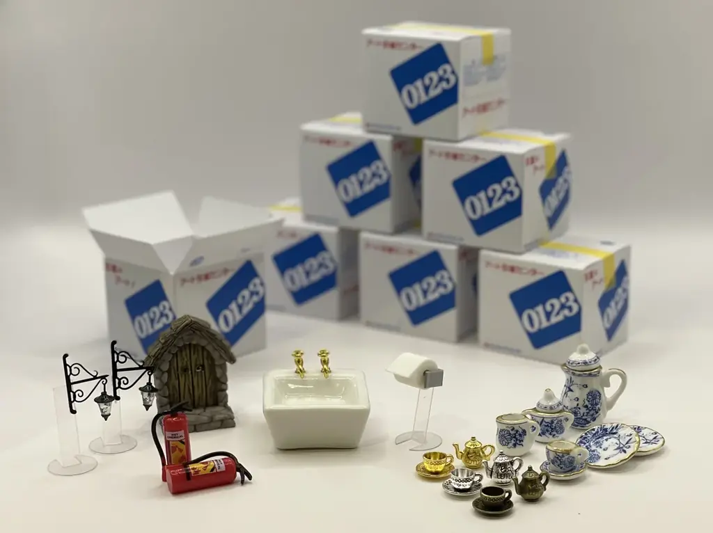 1階ミュージアムショップでは、ドールハウスグッズがランダムで当たるカプセル商品を販売します。価格は0123お引越しダンボールが税込み600円です。