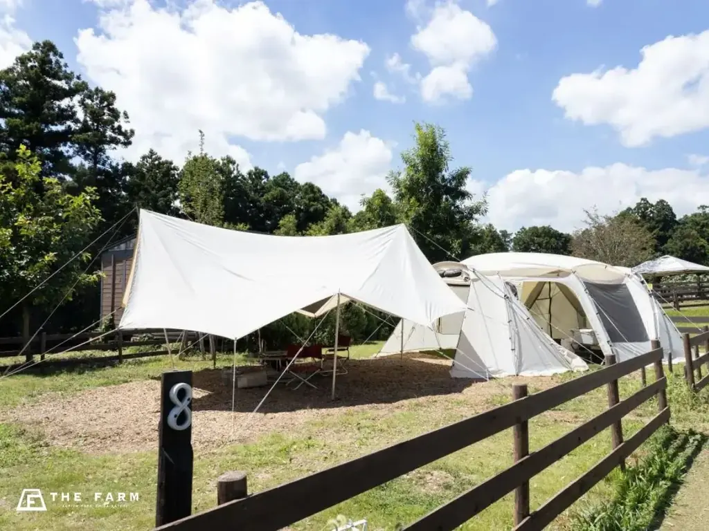 | 予約・詳細ページ | 特設ページ https://www.thefarm.jp/topics/26301/、施設ページ https://www.thefarm.jp/stay/campsite/、温浴 https://www.thefarm.jp/karinnoyu/ |