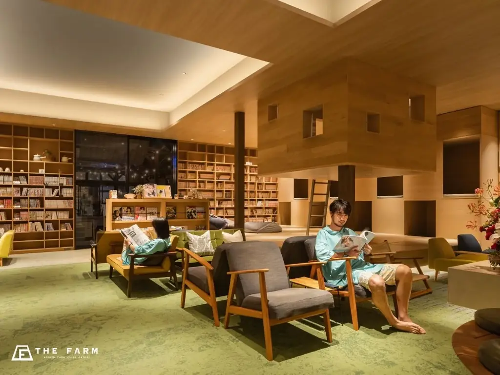 館内にはセルフロウリュ式のバレルサウナや男女共用のガーデンサウナがあり、ガーデンサウナでは水着着用のうえで自然の風を感じる外気浴と組み合わせたサウナ体験が可能です。1万冊以上の漫画・雑誌、ハンモック、フリードリンク、ソファーなどが整備されており、裸足でくつろげる「ほどける時間」を過ごせるとされています。詳細は施設ページをご確認ください。https://www.thefarm.jp/karinnoyu/