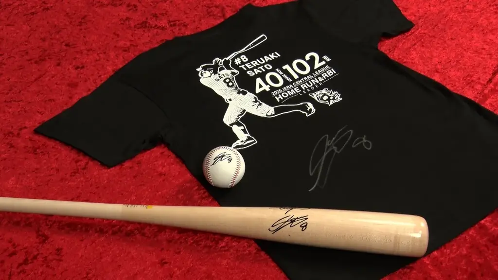 - スポーツ関連グッズ:佐藤輝明選手のサイン入りバット・ボール・Tシャツ(3名)