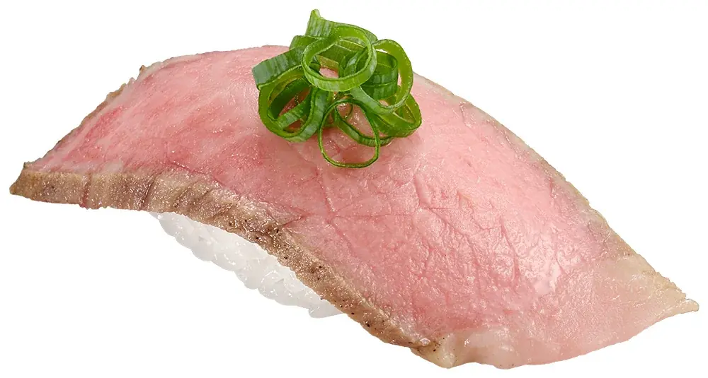 概要:国産ブランド黒毛和牛「黒樺牛(くろはなぎゅう)」を使用したローストビーフにぎり。キメ細やかな肉質、芳醇な香り、上品な甘みと口溶けの良さが特長です。