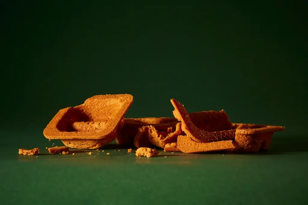 商品説明:放牧牛乳と平飼い卵を使った焼き菓子で、北海道産チーズの入った2種類のふんわり生食感クリームを、こんがり焼き色の付いたザクザク食感のプレスドアーモンドクッキーでサンドしています。缶の中にはチョコレートクランチが土のように敷き詰められ、クッキーサンドを掘り起こすように並ぶビジュアルが特徴です。