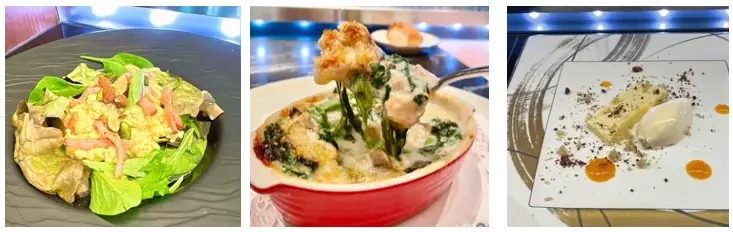 コースは全6品で、ドリンクが含まれ、さらにお土産付きの構成です。お客様が調理される工程を視覚・嗅覚・味覚で体験できる「カウンターデザート」形式を活かし、デザートだけでなく前菜・メインにもこだわったラインナップで提供されます。
