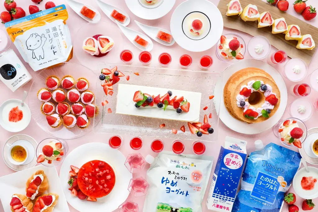 第1弾はヨーグルトやミルクのやさしい風味を活かしたフレッシュなデザートが中心です。味のバランス設計により、いちごの酸味と乳製品のコクを両立させています。
