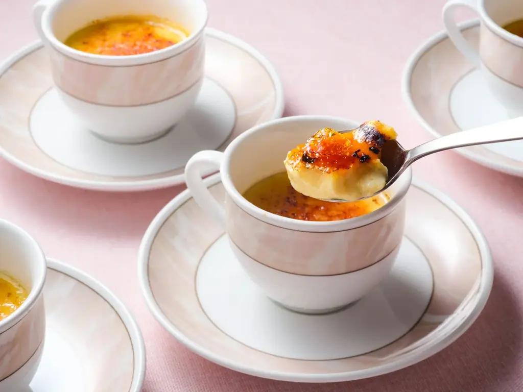 - いちごのクレームブリュレ(たのはた牛乳):上部のキャラメリゼを割るととろりと広がるクリームに苺を添えて提供。