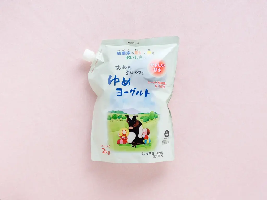 代表製品「おおのミルク村 ゆめヨーグルト」は、もっちりとした食感、爽やかな酸味、驚くほどの粘りとほんのりとした甘さが特徴です。詳しくは公式サイト:https://www.yumemilk.com/