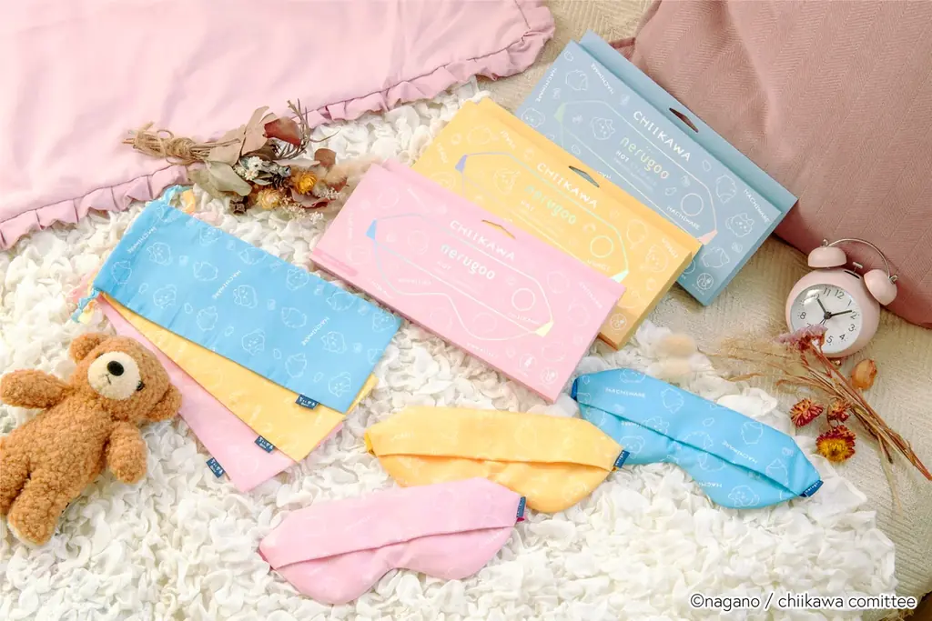本製品は「ちいかわ」「ハチワレ」「うさぎ」の全3種類のデザインをラインナップし、オリジナルパッケージと持ち運びに便利な収納袋が付属します。就寝前のリラックスタイムだけでなく、仕事や勉強の合間、移動中のリフレッシュにも使用できる仕様になっています。