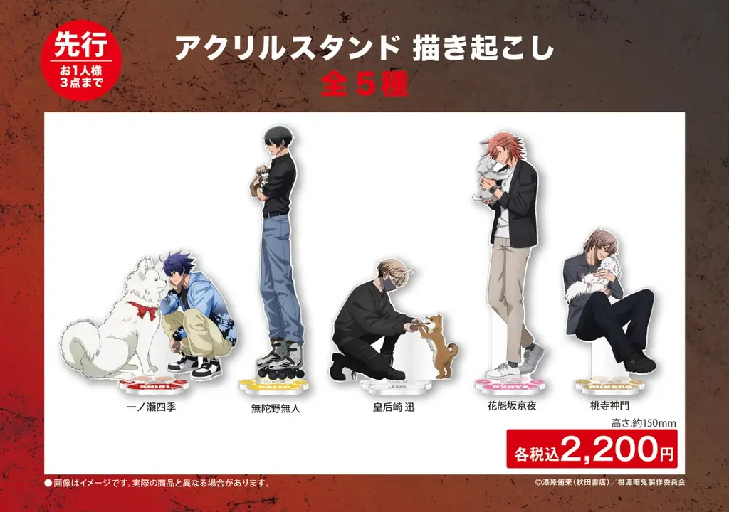 - 描き起こし等身大パネル 5種(対象:一ノ瀬四季/無陀野無人/皇后崎迅/花魁坂京夜/桃寺神門)