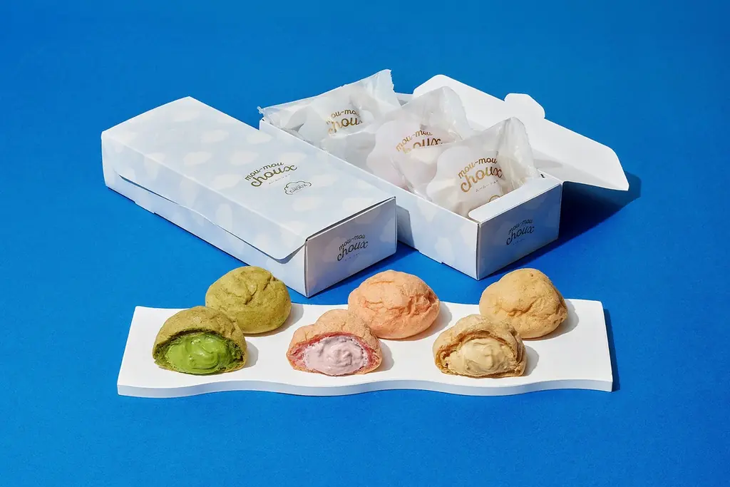 特徴:フランス語で”やわらかい”を意味するMOU(ムー)に由来する商品名。ミルク感たっぷりのフレーバークリームを、雲のようにやわらかくもっちりとしたシュー生地で包み込んだタイプです。口当たりのやさしさが意図されています。