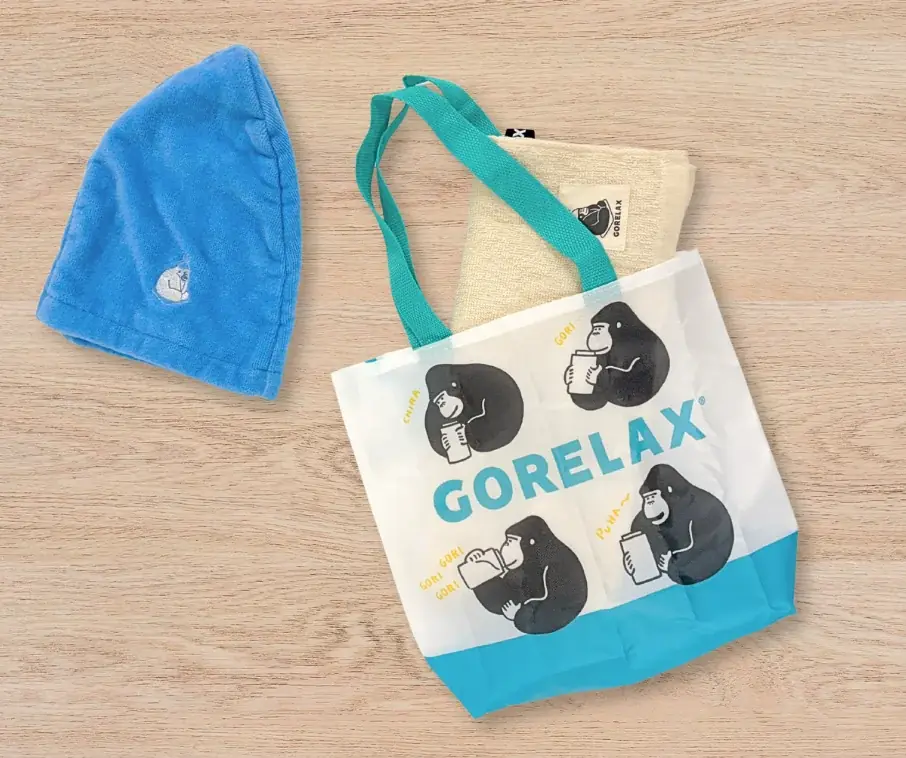 トートバッグはサウナや銭湯での利用を想定した持ち運びやすさに加え、日常使いの利便性を両立するサイズとなっている。製品の仕様は小型ながら必要な収納を確保できるよう設計されており、素材感やプリントデザインは「ごリラックス」の世界観を反映している。