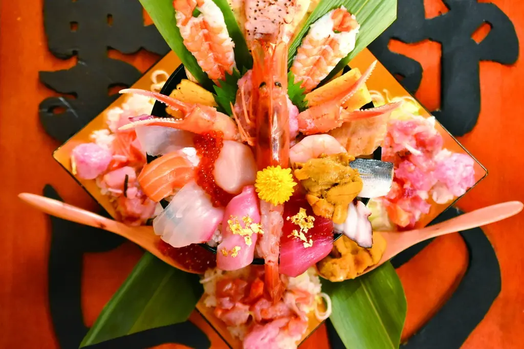 - ニダイメ野口鮮魚店:「野口帝王丼「極」今年も元気モリモリ フルMAX“謹賀新年ver.”」 ¥8,888。場所:イーストヤード1階。各日限定8食。お年玉が隠れたスペシャル海鮮丼。