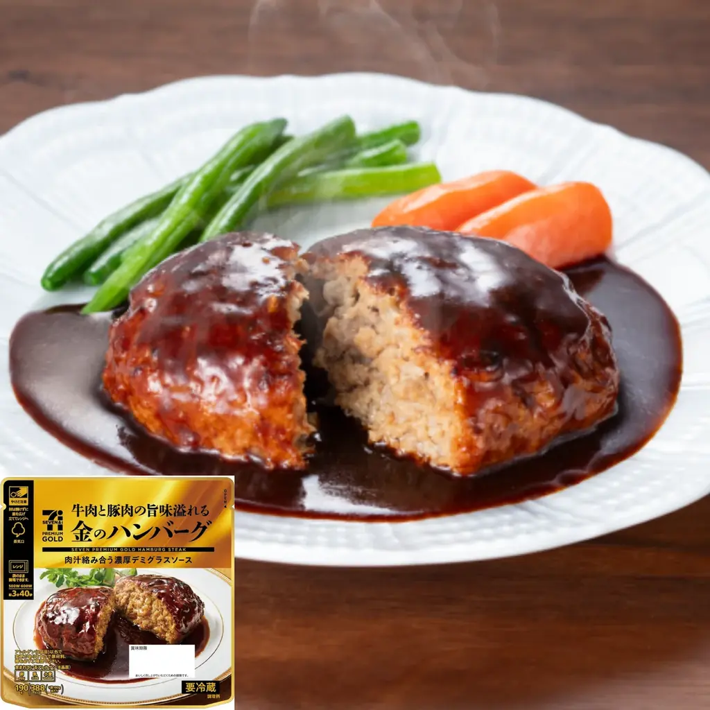 | セブンプレミアム ゴールド 金のハンバーグ | 398円(税込429.84円) | 全国 | 牛肉・豚肉の旨味が溢れるジューシーなハンバーグ。デミグラスソースと肉汁の相性。 |