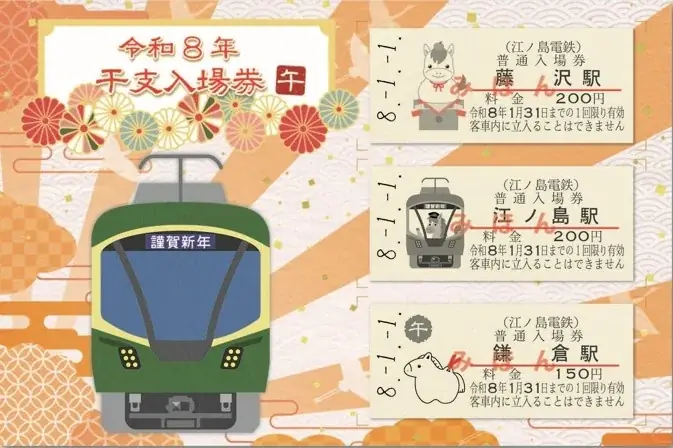 江ノ島電鉄株式会社(所在地:神奈川県藤沢市、社長:黒田 聡)は、2026年1月1日(木祝)より数量限定で「令和8年干支入場券(午)」を発売します。本件は2025年12月19日15時00分に同社より発表されたプレスリリースに基づく情報です。新年にふさわしい意匠を施した特製台紙と、硬券の入場券3枚がセットになった商品で、令和8年の干支である『午(うま)』をあしらったデザインが特徴です。