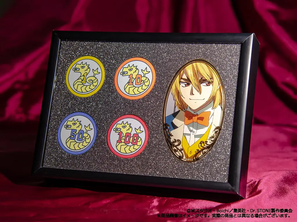 | Dr.STONE 龍水のポーカーチップ(4種記念セット) | 各6,160円 | 2026年3月予定 | フレーム:樹脂(本体・面材)/チップ:セラミック/キャラクタープレート:アクリル | フレーム:2L(W189×H138×D32mm)/チップ:約φ39mm/キャラクタープレート:約W55×H91mm以内 ラインナップ:七海龍水/石神千空/あさぎりゲン/コハク/西園寺羽京(全5種) | 商品名に「4種記念セット」と表記があるが、案内では全5種のラインナップが記載されている |