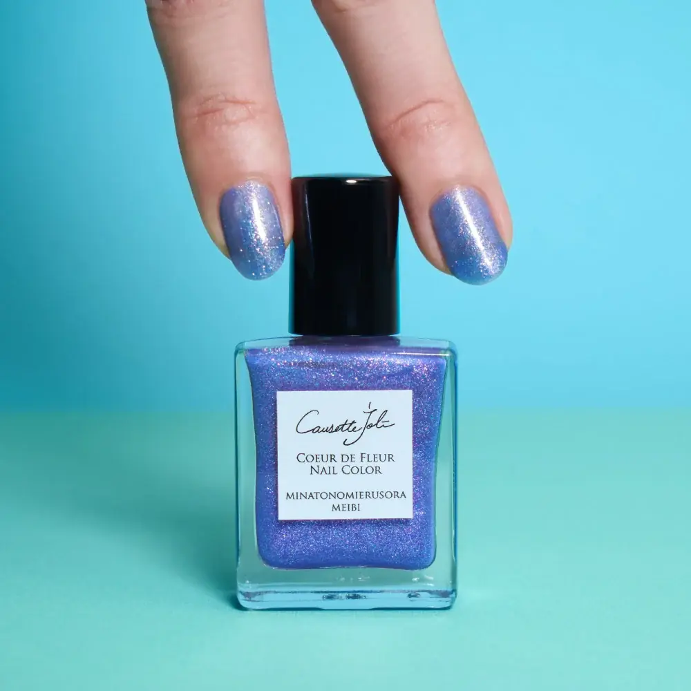 新色の名称はMINATONOMIERUSORA MEIBI(みなとのみえるそら めいび)。ブランド創業地である横浜の季節感や歴史、港町の水面のきらめき、根岸森林公園の広い空と海の情景を元に設計されたシアーブルーのカラーで、Opacity:2の透け感と華やかな煌めきが特徴である。