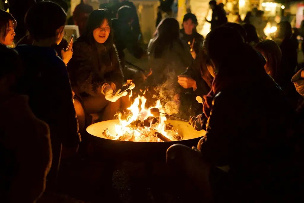 初日となった12月19日(金)には、焚き火エリアが特に賑わいを見せ、焚き火を囲んで行う有料のマシュマロ焼き体験(参加費100円)には700名以上が参加しました。寒さ対策としてカイロ(1枚100円)も焚き火エリアで販売され、来場者が温まるための工夫が施されています。