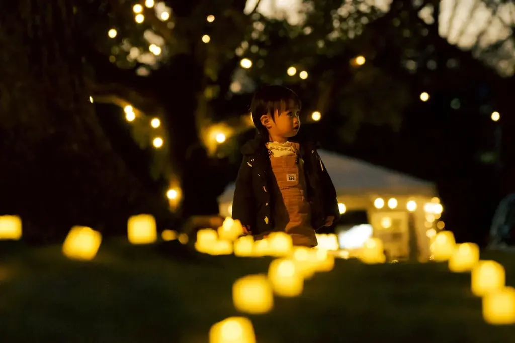 このマーケットは、従来の賑やかなクリスマスマーケットのイメージとは一線を画しながら、幼少期に抱いたわくわく感をやさしく呼び起こす「光とぬくもり」に重点を置いた演出が特徴です。会場全体を包む世界観の中心には、淡路島発の木組み構造体「hitoto」が据えられ、木と紐だけで組み上げられたその構造は、金物を使わない独特の美しさと環境配慮を兼ね備えています。