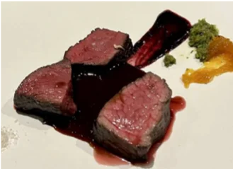 TROIS VISAGESは店名が示すようにゲスト・スタッフ・生産者の関係性を大切にする店で、スタッフ自ら畑に赴き、一皿に産地の季節や情景を反映させます。同店は『ミシュランガイド東京 2026』にて三年連続となる一つ星を獲得し、同年にグリーンスターを受賞しています。東京都内で無角和種を味わえる数少ないレストランの一つです。