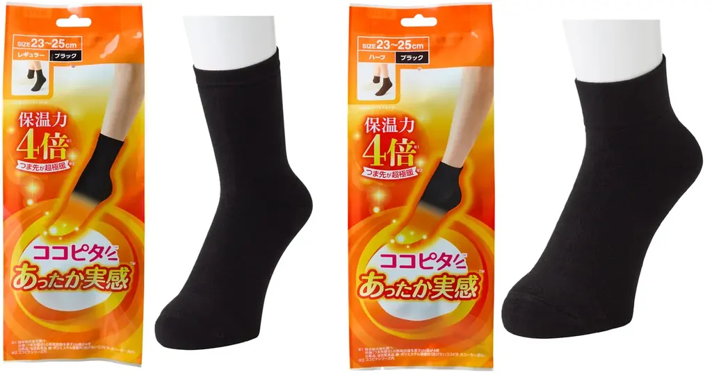 - ココピタ あったか実感:ハーフ 880円、レギュラー 1,100円(靴が履ける厚みで暖かく、吸水・速乾性と保温力を兼ね備えた靴下)