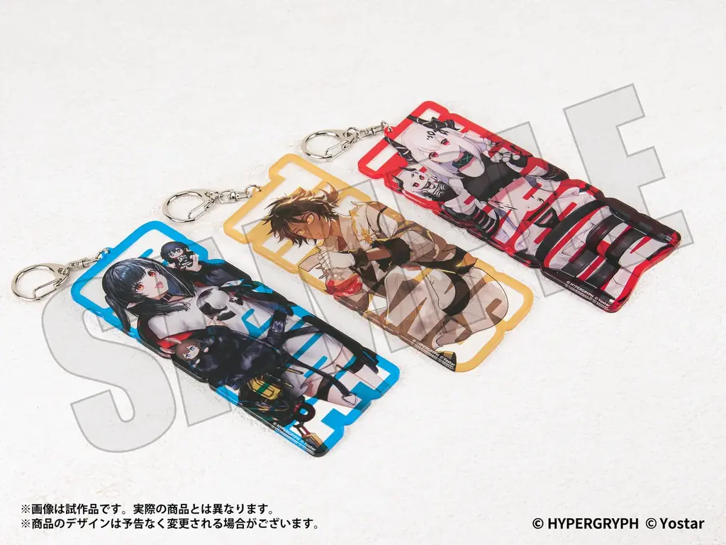 今回案内されている商品は、大きく分けてアクリル・布・紙・金属といった素材を活かしたグッズ群です。それぞれの仕様とラインナップは発表内容どおりで、ソーンズ、マドロック、クロージャ、エリジウムなど登場キャラクターに合わせた全種取り揃えが特徴です。