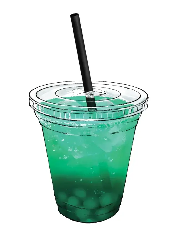 - ナニカのたまご 800円(税込)=メロンシロップ/ブルーキュラソーシロップ/炭酸水/ポッピングボバ