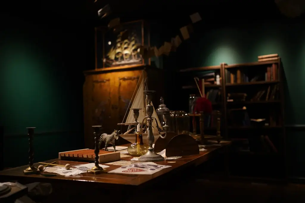 夕食のお使いの途中で迷い込んだ魔法の商店街が舞台。五感を使った選択や特殊印刷を活かした仕掛けにより、初めての来場者でも没入できる長時間の体験が特徴です。