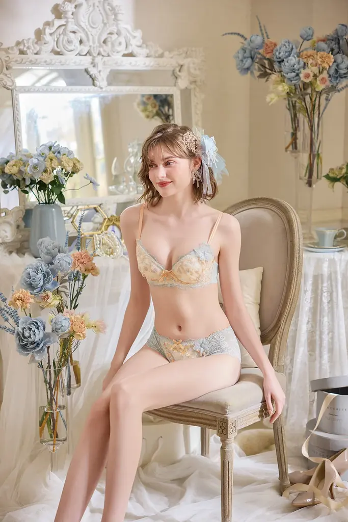 - アルベルタシリーズ:優雅なアンティークの世界を背景に、「Un bisou doux sur ta joue(あなたの頬に優しいキスを)」など愛にまつわる言葉を散りばめたコレクション。価格例:ブラジャー ¥5,170~¥5,830、レースショーツ ¥3,190、カップ付スリップ ¥9,790(税込)