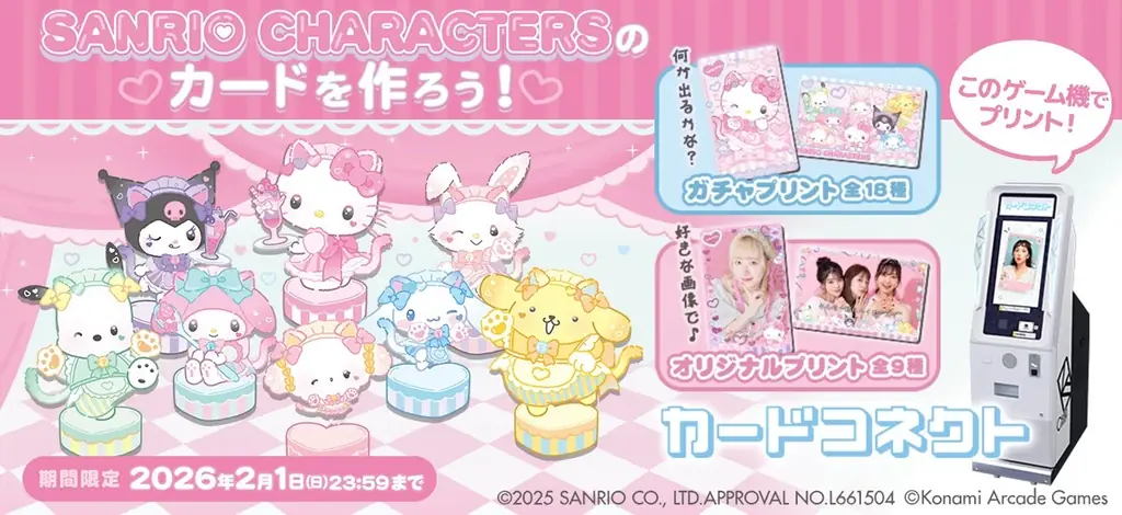 | 著作権表記 | ©Konami Arcade Games/©2025 SANRIO CO., LTD. APPROVAL NO. L661504/© esther kim. All Rights Reserved/©臼井儀人/双葉社・シンエイ・テレビ朝日・ADK/©Benesse Corporation 2025 |