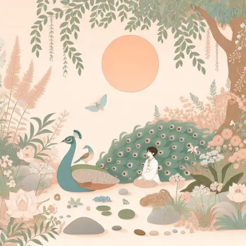 日本においても、クジャクは古くから特別な存在として扱われてきました。『日本書紀』には、推古天皇の時代に新羅からクジャクが贈られたという記録があります。江戸時代には、クジャクを観察しながら茶を楽しむ「孔雀茶屋」が存在し、庶民の間でも親しまれていました。